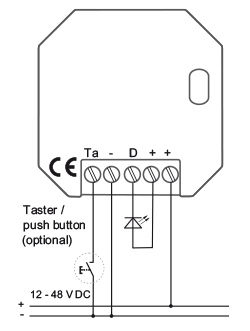 RCJ18E5001A01-23K Unterputz-Dimmer, Easywave, 12-48VDC, 1x Dimmen (LED-Strips), potenzialbehaftet, Tastereingang
