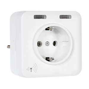 Der kaskadierbare Steckdosen-Repeater RXP05 empfängt Easywave-Telegramme und sendet sie mit einer kurzen Verzögerung von ca. 0,3 Sekunden wieder aus.