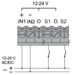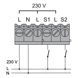 Es können bis zu zwei Taster oder Schalter angeschlossen werden.
